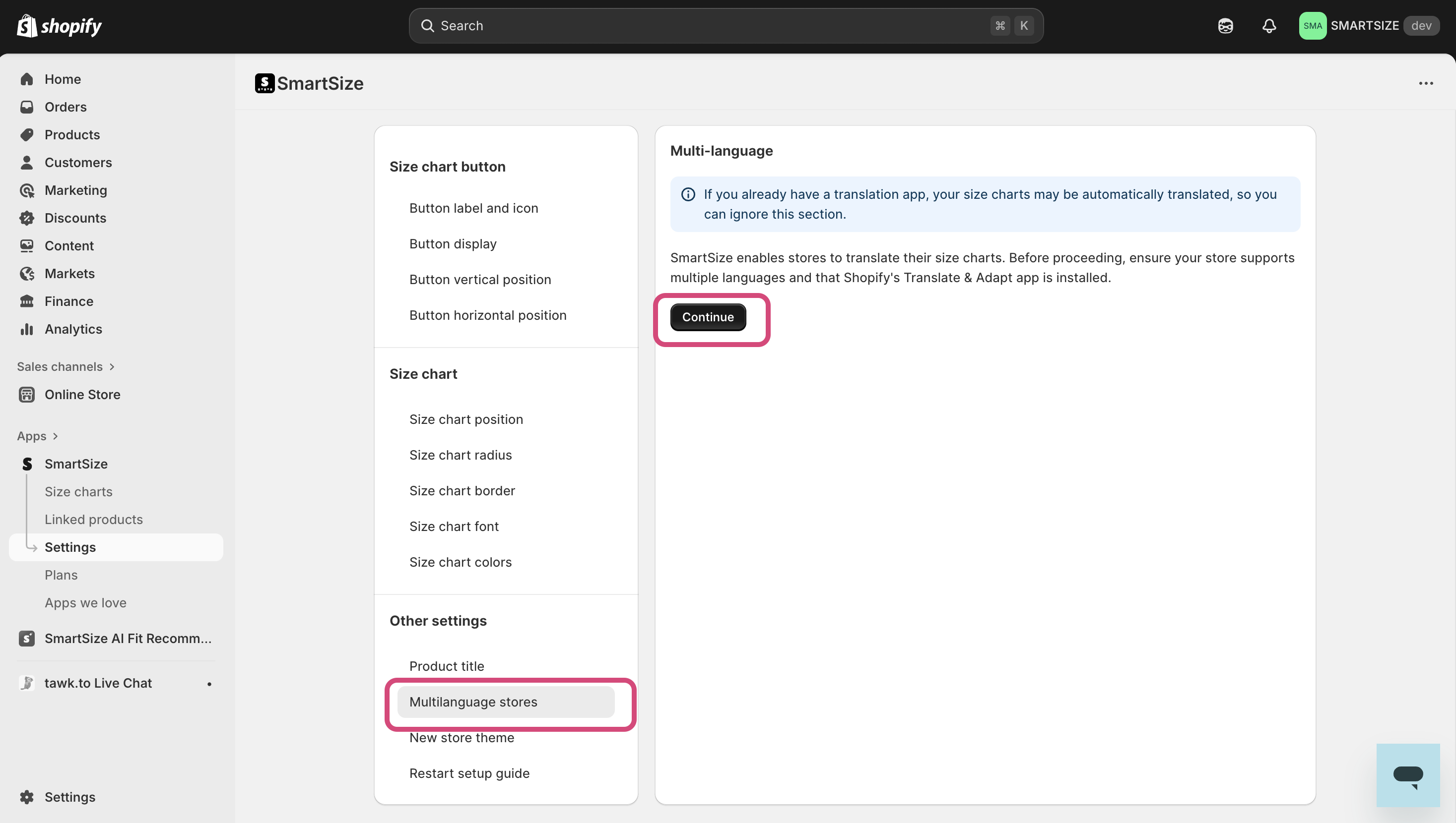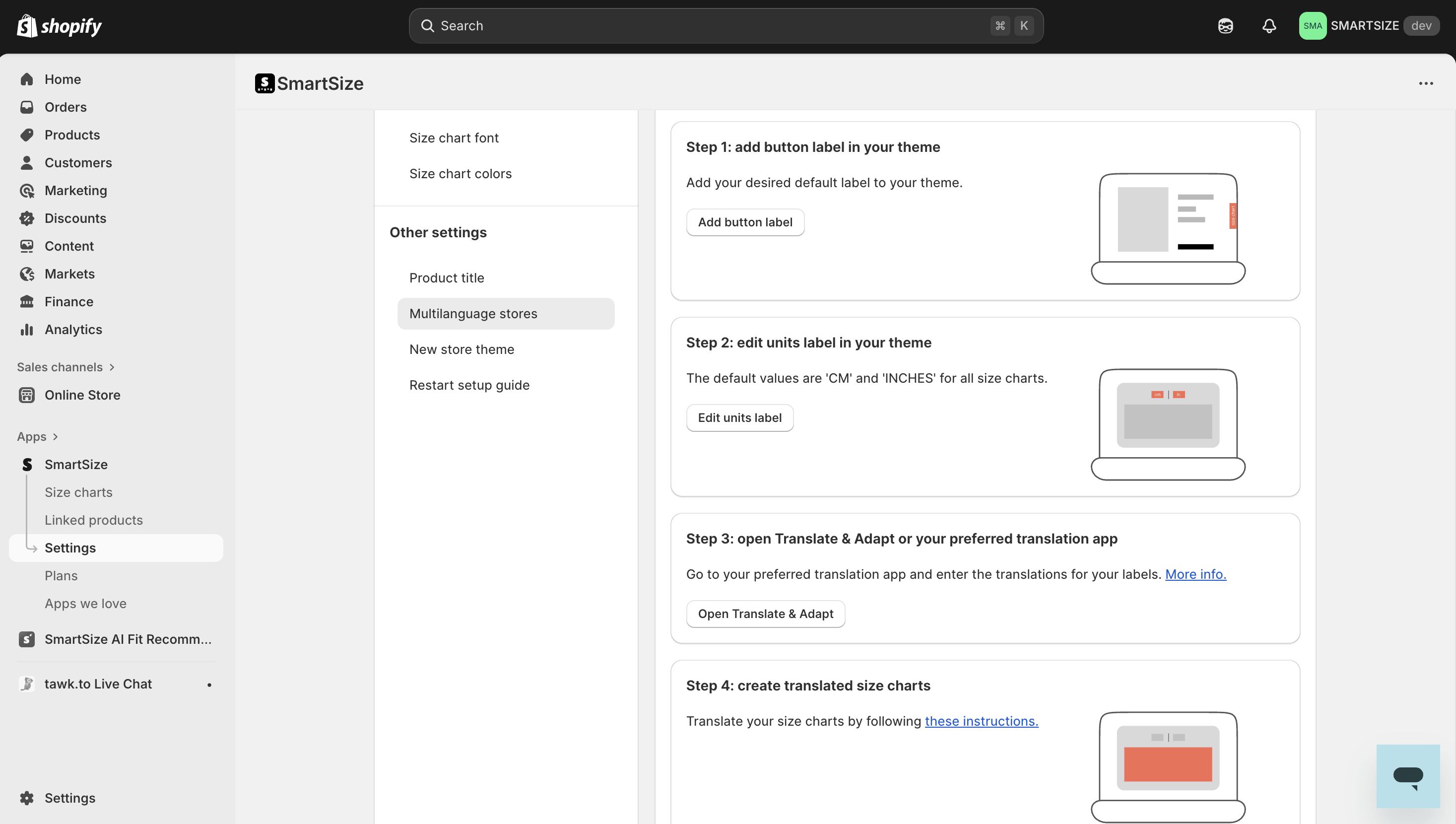 Important: if you have a third party app that does translations for your store, you do not need to do any of these steps. Your size charts should be translated automatically.