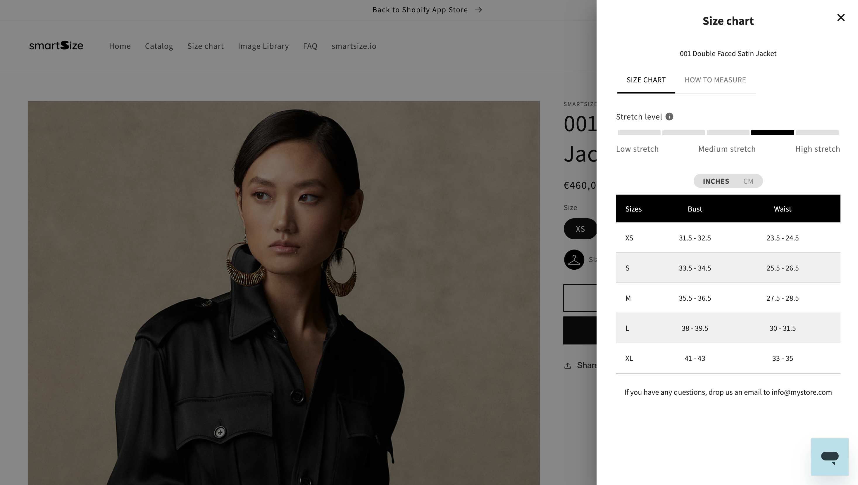 In Shopify, go to Apps → SmartSize → Size charts and open a chart.