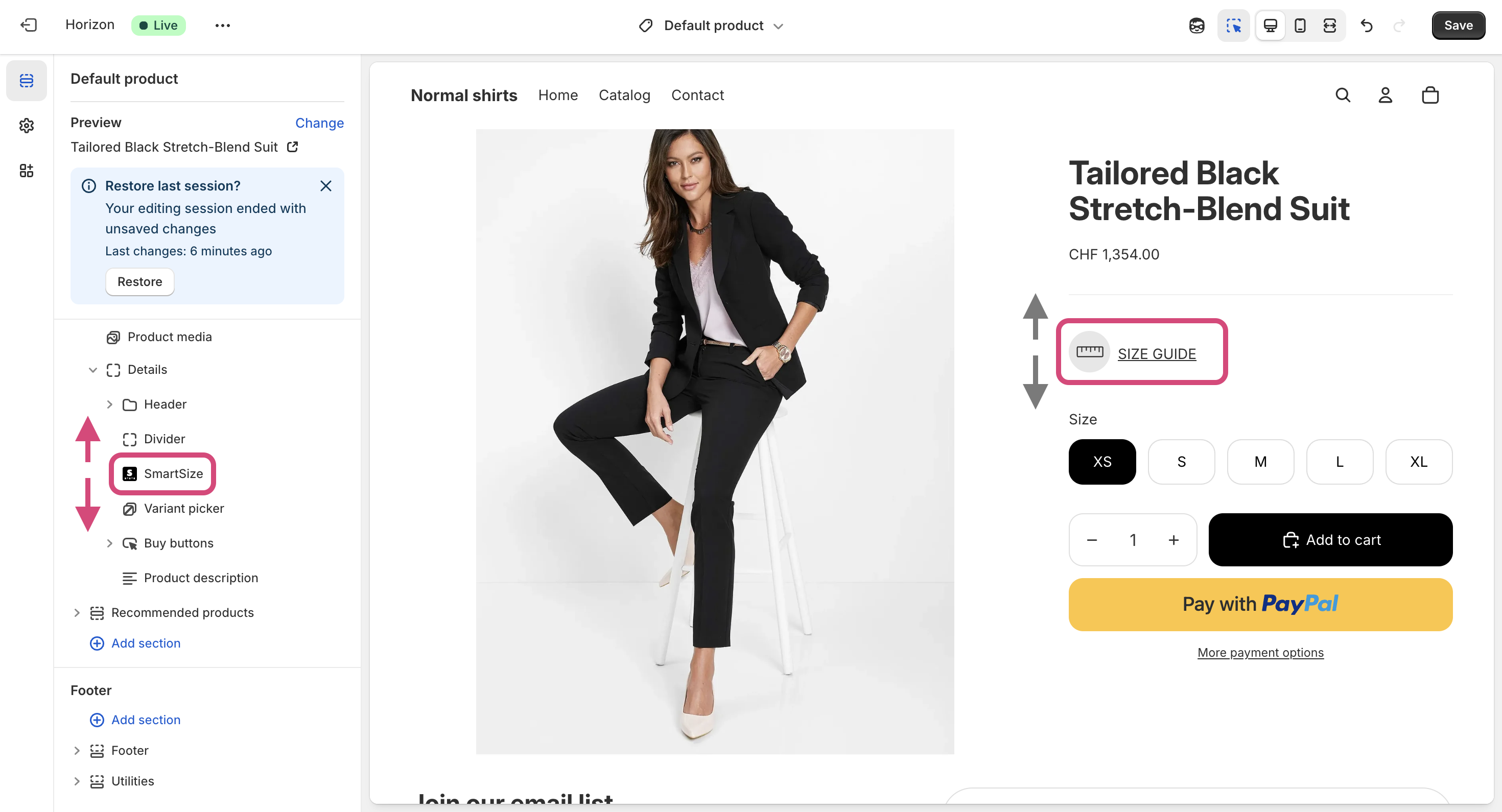 Open a product page in your live store.