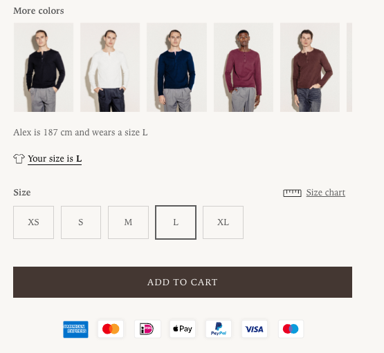 7. Click 'Save' on the top right corner and go back to your Product page. The size button will now be displayed here: