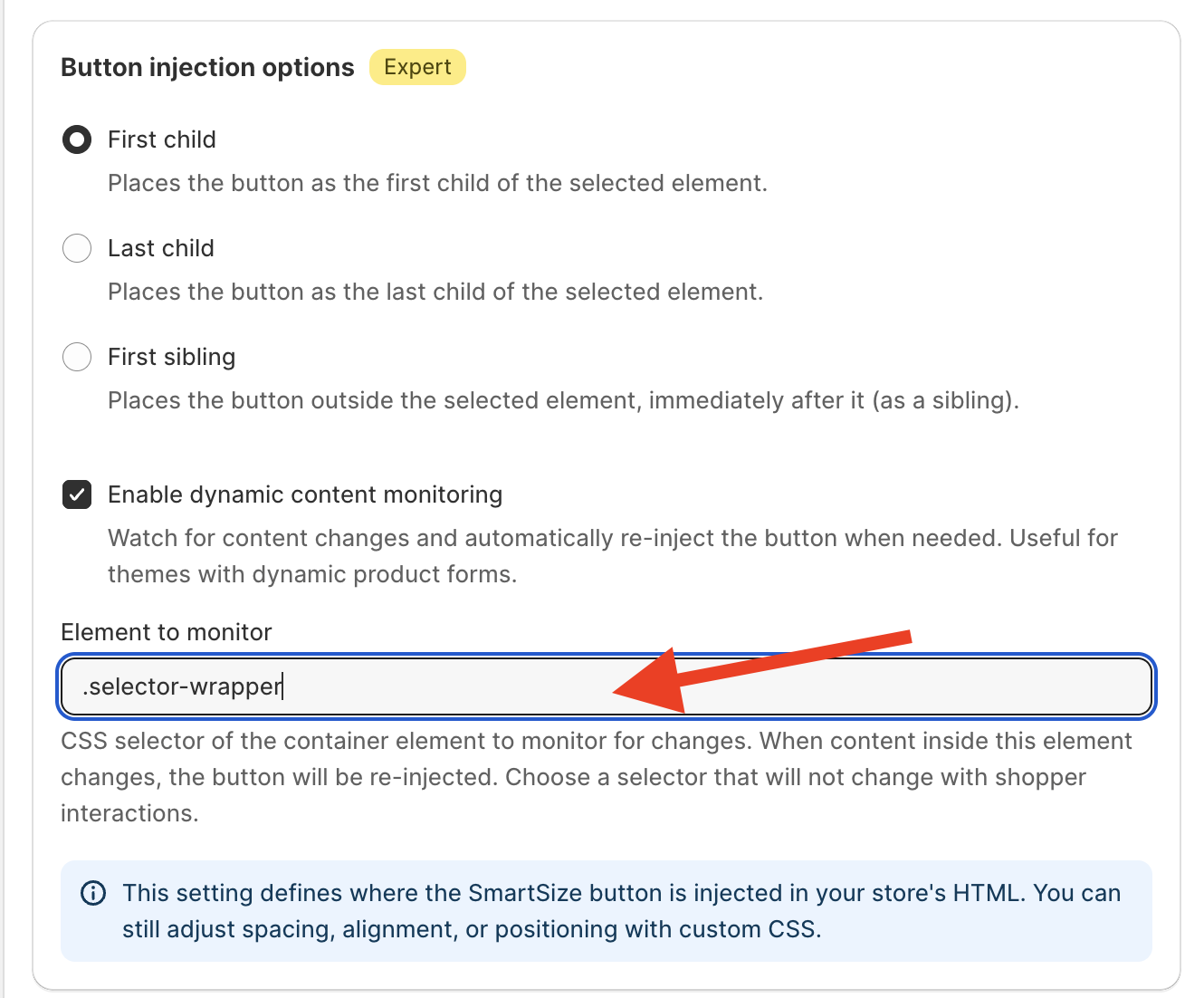 Congratulations! The selector you chose is stable during variant changes and is a good choice to use on the Element to monitor field):